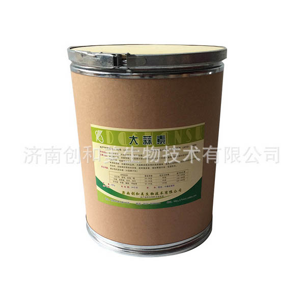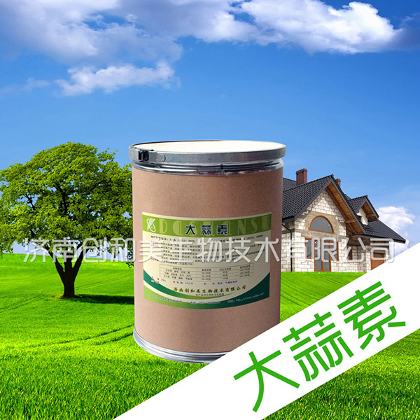 ::產品說明:: 大蒜素化學名為二烯丙基三硫化合物,具有殺菌,促進生長、調味誘食等多種功能,無毒副作用,無殘留,現(xiàn)已在養(yǎng)殖業(yè)中得到廣泛應用。主要成份: 合成大蒜油、天然大蒜油、賦形劑等。 外觀及性狀:為白色流動性粉末,具有濃烈大蒜氣味。 主要功效: 1、抗菌廣譜,抑菌性強。大蒜素對革蘭氏陽性菌和革